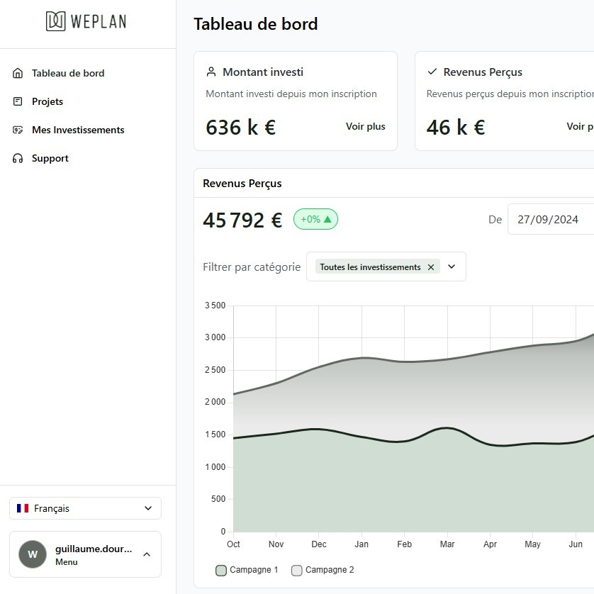 En réunissant au même endroit vos opérations, documents et suivis, WePlan crée un véritable tableau de bord personnel. Vous accédez à une vision claire et organisée de votre patrimoine, bénéficiant d’un espace conçu pour conjuguer exigence digitale, sécurité renforcée et confort d’utilisation haut de gamme.